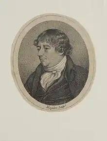 Not long after returning to Ireland, he became involved in radical politics, having already, in 1782, published a pamphlet in support of the Irish cause.[6] He became Dublin's leading radical lawyer of the day.[8] In 1792, he represented Napper Tandy, a radical member of the Irish Parliament, in a legal dispute over parliamentary privilege.[6] In the early 1790s, McNally became a founder member of the United Irishmen,[9] a clandestine society which soon developed into a revolutionary Irish republican organisation.[10] He ranked high in its leadership and acted as the organisation's chief lawyer, representing many United Irishmen in court.[11][12] This included defending Wolfe Tone and Robert Emmet, the leaders of the 1798 and 1803 rebellions respectively, at their trials for treason.[13] In 1793, McNally was wounded in a duel with Sir Jonah Barrington, who had insulted the United Irishmen.[6] Barrington subsequently described McNally as "a good-natured, hospitable, talented and dirty fellow".[6] John O'Keeffe described McNally as having "a handsome, expressive countenance and alive sparkling eyes".[14]