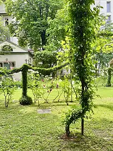 In 1920 the Italian architect and politician Luca Beltrami, relying on historical documents, was able to describe the likely position of the original vineyard, which ran probably parallel to the current Via De Grassi (De Grassi Street).[4] He photographed the vineyard that was then on the same spot when cultivations were beginning to be eradicated; at that time a resolution passed to subdivide the territory in lots to build new constructions.[5]