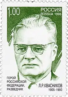 Leonid Romanovich Kvasnikov (Russian: Леонид Романович Квасников; 2 June 1905 – 15 October 1993) was a Soviet and Russian chemical engineer and a spy, serving first in NKVD and later served in KGB. Graduated with honors from the Moscow Institute of Chemical Machine-Building in 1934 and worked as an engineer in a chemical plant for several years in the Tula region. Kvasnikov continued postgraduate engineering studies and joined the KGB in 1938 as a specialist in scientific-technical intelligence. Beginning in 1939 he was the section head of scientific and technical intelligence. Kvasnikov served a few short-term assignments in Germany and Poland and rising swiftly to become deputy chief and then chief of the KGB scientific intelligence section.