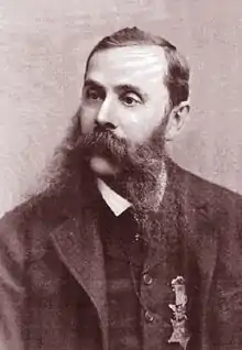 Leopold Karpeles was born in Prague to a prominent and wealthy Jewish family, spending much of his early life around farms and ranches near the city. There, he and his brother Emile had been baptized, a requirement for attendance in Catholic school, and Emile took to the new religion, though Leopold was taught by his family to "lay low" about his religion.[1] Karpeles moved to Galveston, Texas, in 1849 at age 11. Emile, 7 years his senior, had preceded him there and was running a successful dry goods store and Leopold intended to enroll in school and prepare to apprentice at the store. The town was predominately German in ancestry but had seen an influx of immigrants in the decade before.[2] Studies early in his life left Karpeles fluent in English, French, German, Greek and Czech, and in Texas he also became proficient using the knife, lasso, rifle, pistol and saber as weapons. Karpeles' time in Texas initially marked mostly by school and work, which he ultimately found unsatisfactory, and so he volunteered to join supply convoys the store used to ship goods around Texas. In this work, he helped repel attacks and defend passengers, sometimes joining the Texas Rangers in the process. In this work, he found great satisfaction, especially with the outdoors and the sense of adventure.[1] The work did distance him from his brother as he sought more independence.[3]