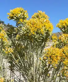Lepidospartum is a genus of North American desert shrubs in the daisy family.[2][3][4] They are known commonly as broomsages or scalebrooms. These are tall, woody shrubs with stiff twiggy branches that resemble brooms. They are native to the southwestern United States and far northern Mexico. These shrub have thin, narrow, needlelike or scalelike leaves and bear yellow daisy flowers.[5]