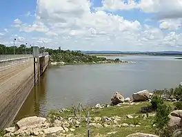 Leslie Dam is a dam in the locality of the same name Leslie Dam, Southern Downs Region, Queensland, Australia.[2][3] It impounds Sandy Creek, a tributary of the Condamine River, to create Lake Leslie (28°14′12″S 151°54′22″E / 28.2367°S 151.9061°E).[4] It is 11 kilometres (6.8 mi) from Warwick town centre. It was built for water storage and not for flood mitigation. Freshwater fishing and water sports facilities are available.[3]