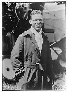 During the 1920s, Maitland competed for the Air Service and its Air Corps successor in air races and pioneering flights as part of the service's program of generating favorable publicity.[3] While Operations Officer for Col. Augustine Warner Robins at the Fairfield Air Intermediate Depot (FAID) in October 1922, he was part of the Army team at the National Air Races held that year at Selfridge Field, Michigan.[4] On October 14, he reputedly became the first U.S. pilot to fly faster than 200 mph (320 km/h) and received a letter of congratulations from Orville Wright.[5] Flying a Curtiss R-6 racer over a 50-kilometer (31-mile) course, Maitland finished second in the Pulitzer Trophy race, behind Army test pilot Lt. Russell Maughan but ahead of four Navy and eight Army racers, averaging 198.8 mph (319.9 km/h) and reporting brief blackouts during the tight pylon turns.[6] On March 29, 1923, he set a world's absolute speed record of 236.58 mph (380.74 km/h) over one kilometer in the R-6, but the record was disqualified because he failed to maintain level flight.[7][n 1] However he broke his own record in October when he flew at a recorded speed of 244.94 mph (394.19 kmh), also in the R-6.[2]