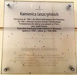 The Leszczyński Residence (Kamienica Leszczynski) - also called the Prażmowski, Pastoriusa, Rautenstrauchów or Dobrycza - is a rococo-classical townhouse at 87 Krakowskie Przedmieście, in Warsaw.