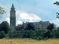 The hospital, which was designed by Malcolm Stark in the Renaissance Revival style, opened as the Govan District Asylum in September 1895.[2][3] Two single‑storey pavilions were added in 1908.[2] In 1914, the nearby 17th century Hawkhead House mansion was annexed to become part of the hospital facility, which became known as Hawkhead Asylum[4] (not to be confused with Hawkhead Hospital for infectious diseases a short distance to the west within the boundaries of Paisley, which was constructed in the 1930s).[5]