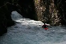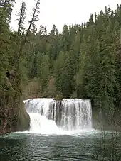 The Lewis River is a tributary of the Columbia River, about 95 miles (153 km) long, in southwestern Washington in the United States. It drains part of the Cascade Range north of the Columbia River. The drainage basin of the Lewis River covers about 1,046 square miles (2,709 km2).[4] The river's mean annual discharge is about 6,125 cubic feet per second (173.4 m3/s).[5] Unlike nearby Lewis County and Fort Lewis the Lewis River was not named for Meriwether Lewis, but rather for A. Lee Lewis, an early colonizer who homesteaded near the mouth of the river.[6]