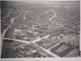 ![]() Aerial photograph of Lewisham in the 1930s showing from left, the railway line, Lewisham Hospital and Petersham Park | |||||||||||||||