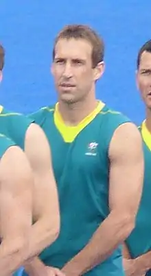 New national team coach Ric Charlesworth named him, a returning member, and fourteen total new players who had few than 10 national team caps to the squad before in April 2009 in a bid to ready the team for the 2010 Commonwealth Games.[11] In 2009, he was a member of the national team during a five-game test series in Kuala Lumpur, Malaysia against Malaysia.[12] He was a member of the national team in 2010.[5] That year, he was a member of the team that finished first at the Hockey Champions Trophy.[5] In May 2011, he played in the Azlan Shah Cup for Australia. The Cup featured teams from Pakistan, Malaysia, India, South Korea, Britain and New Zealand.[13] In December 2011, he was named as one of twenty-eight players to be on the 2012 Summer Olympics Australian men's national training squad. This squad was narrowed in June 2012. He trained with the team from 18 January to mid-March in Perth, Western Australia.[14][15][16] In February during the training camp, he played in a four nations test series with the teams being the Kookaburras, Australia A Squad, the Netherlands and Argentina.[2] He played for the Australian A team in their 3–1 loss to the Kookaburras in the first round of the competition. He scored his team's only goal.[6] He was selected to play for Australia at the 2012 Summer Olympics, where they won the bronze medal.[17]
