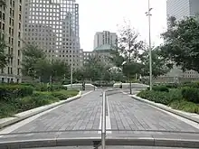 - ↑ Fishbein, Rebecca (November 20, 2013). "WTC Getting Elevated "Liberty Park" With View Of 9/11 Memorial". Gothamist. Archived from the original on November 23, 2013. Retrieved April 24, 2014.