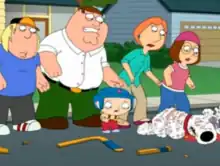 ![]() Brian after he was hit by a car; the rest of the family worriedly looks at him | |