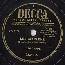 - ↑ ""Lili Marlene" MCA Records re-issues of Brunswick re-issue". volumeet.com. Retrieved 20 June 2014.