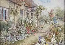 Lilian Stannard RI (1877-1944) was an English illustrator and painter, primarily of watercolours. She was one of the select group of 'garden painters' that included George Samuel Elgood and Helen Allingham[1] whose primary subject was the English garden. A prolific artist, whose work became widely known through reproductions, first showed at the Royal Society of British Artists in 1898 and exhibited twenty-eight watercolours of garden scenes at the Royal Academy of Arts between 1902 and 1930. She also exhibited at the Society of Women Artists, Royal Birmingham Society of Artists, Walker Art Gallery, Royal Cambrian Academy and held a large number of solo shows, especially at the galleries of Arthur Ackermann & Son and the Mendoza gallery in London.[2] Illustrations of her work were used for a series of postcards and were included in Horace and Walter Wright's popular gardening volumes: The Perfect Garden (1908),[3] Beautiful Flowers and How to Grow Them (1909)[4] and Popular Garden Flowers (1911)[5]