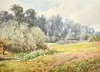 Lilian Stannard was born in Froxfield in Bedfordshire on 24 March 1877, the second daughter of Henry Stannard (1844-1920), a sporting painter and art teacher and his wife Ruth Willsher.[6] She was one of five siblings, all of whom were taught to paint by their father.[2] Her sister Emily Stannard (1875-1906) was a professional artist specialising in landscape scenes who also exhibited at the Royal Academy.[7][8] Her brother Henry Sylvester Stannard (1870-1951) was also a successful landscape painter.[9] Her other siblings Ivy Stannard (1881-1968) and Alexander Molyneux Stannard (1878-1975) were primarily skilled amateur artists, the later earning his living as an art tutor.[10] as did his daughter Joan Molyneux Stannard (1903-1942) whose name occurs in the 1923 Women's Academy Exhibition at Kensington Olympia bur rarely afterwards.[2] Lilian's niece Theresa Sylvester Stannard (1898-1947) was also a watercolourist who favoured landscapes and gardens.[11][note 1] Lilian Stannard attended Howard College in Bedford, a private institution for girls established in 1852.[12] with much of her artistic education at her father's studio, the Bedford Academy of Arts.[12]