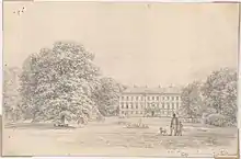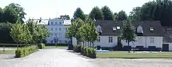 The core of the main building was built for Hans Gustav Lillienskiold in 1765. It was a yellow, single-story Empire-style building. It was adapted in the beginning of the 19th century and underwent major alterations after being taken over by Adam Knuth in 1852. He lengthened the building and added an extra floor, the roof was replaced by a more shallow, half hipped tile roof and the facade was decorated with robust cornices and triangular pediments above the windows on the second floor. The facade towards the garden features a median risalit with veranda topped by a triangular pediment. The building was again lengthened in 1919.