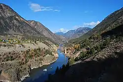 The Lillooet River is a major river of the southern Coast Mountains of British Columbia. It begins at Silt Lake, on the southern edge of the Lillooet Crown Icecap about 80 kilometres northwest of Pemberton and about 85 kilometres northwest of Whistler. Its upper valley is about 95 kilometres in length, entering Lillooet Lake about 15 km downstream from Pemberton on the eastern outskirts of the Mount Currie reserve of the Lil'wat branch of the St'at'imc people. From Pemberton Meadows, about 40 km upstream from Pemberton, to Lillooet Lake, the flat bottomlands of the river form the Pemberton Valley farming region.