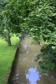 The headwaters of Limestone Run are underground.[1] The stream begins on the western border of East Buffalo Township and the eastern border of Buffalo Township, near the community of Lochiel. The stream flows northeast for a short distance, crossing Pennsylvania Route 45, and then turns west, following Pennsylvania Route 45. After several miles, it turns briefly southeast and crosses Pennsylvania Route 45 before turning northeast and crossing the state route again. It then enters Lewisburg and turns southeast, crossing U.S. Route 15 and Pennsylvania Route 45. The stream enters the West Branch Susquehanna River in southeastern Lewisburg, near Bucknell University.[3]