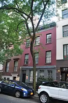 He also maintained relationships with women. In 1941, he married Fidelma Cadmus, a painter and the sister of the artist Paul Cadmus.[18] Kirstein and his wife enjoyed an amicable if sometimes stressful relationship until her death in 1991, but she withdrew from painting and then from life, suffering breakdowns that eventually were more serious than his.[14] Some of his boyfriends lived with them in their East 19th Street house; "Fidelma was enormously fond of most of them."[19] The New York art world considered Kirstein's bisexuality an "open secret", although he did not publicly acknowledge his sexual orientation until 1982.
