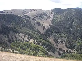 The Capitan Mountains Wilderness was created as part of the New Mexico Wilderness Act of 1980 (Public law 96-550), passed in December 1980, which placed 34,000 acres of public lands in the rugged mountains north of Lincoln and north-east of Capitan into the National Wilderness Preservation System.[33] Protecting a rare (for New Mexico) east–west mountain range, the Capitan Mountains Wilderness measures 12 miles long and from two to six miles wide. Elevations range from about 5,500 feet to 10,083 feet at the top of Capitan Peak.[34] Because of the rugged nature of the area there are few trail heads into the wilderness and those require the use of a 4-wheel drive, high-clearance vehicle.[35]