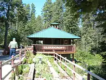 Given the importance of fire prevention and fire fighting in the heavily forested areas of the Lincoln National Forest it is not surprising that there have been a number of fire lookout towers constructed on forest lands. Of the sixteen fire lookout structures once in the forest, 9 are still extant, and six of those are listed on the National Register of Historic Places (NRHP). The structures range from the unique stone structure of the Montjeau Lookout, a 1930s Civilian Conservation Corps (CCC) project in the Smoky Bear Ranger District, to the Sacramento Lookout, a 14x14 live-in cab on a 62-foot high steel tower located west of Cloudcroft, to the 7x7 ft. Dark Canyon Lookout, standing 48 feet over the deep canyons of the southern Guadalupe District above its CCC-constructed observer's cabin and sheds. Most of these Lookouts offer some sort of public access, and two of them, Carissa and Wofford, are under consideration for conversion to rental cabins.[16]