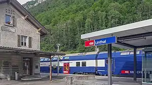 Linthal railway station is a railway station in the municipality of Glarus Süd in the Swiss canton of Glarus. It is the terminus of the Weesen to Linthal railway line, and serves the village of Linthal.[1][2]