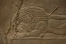 In the later reliefs captured lions are released into an enclosed space, formed by soldiers making a shield-wall. Some are shown being released from wooden crates by an attendant in a smaller crate sitting on top, who lifts up a gate.[9] Despite the hunting, Mesopotamian lions survived in the wilderness, until 1918.[12][13]