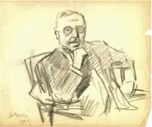 Lionello Perera was passionate about fine arts and acted as an important collector in the USA with a particular attention to eighteenth century genre painting, as well as nineteenth century European Naturalism.[8] His collection mostly consisted of Italian masters such as Pietro Longhi, Lorenzo Lotto, Arturo Noci, and Cosimo Rosselli.[19] Lionello Perera used to draw caricatures of friends, acquaintances and people he met during his public and private life.[14] He drew on everything that was at hand: envelopes, calendar pages, concert programs, business cards, and napkins. Among his subjects were several protagonists of American high society, politics, and the arts such as:  Fiorello La Guardia, Enrico Caruso, Arturo Toscanini, and E. Philips Oppenheim. Hundreds of drawings are still in the collection of the Perera family and some even at the Library of Congress, though many are dispersed since he enjoyed exchanging caricatures as was customary at the time.[3]