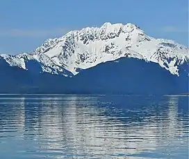Lions Head Mountain is a 5,400+ ft (1,650+ m) mountain summit located in the Boundary Ranges of the Coast Mountains, in the U.S. state of Alaska. The peak is situated in the Kakuhan Range, 46 mi (74 km) northwest of Juneau, and 3 mi (5 km) east of Lynn Canal, on land managed by Tongass National Forest. Although modest in elevation, relief is significant since Lions Head Mountain rises 5,400 feet above the Berners River Valley in less than three miles. The peak's descriptive name was applied in 1867 by George Davidson, geographer with the United States Coast Survey, because its serrated profile resembles a lion couchant.[5][6] This name was published in the 1869 Coast Pilot, and officially adopted in 1929 by the U.S. Board on Geographic Names.[5]