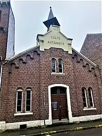 Historically, most of antoinist temples in Belgium were built before the World War II, when at least one of the founders was still alive. The first temple, the one of Jemeppe-sur-Meuse, was consecrated two years before the death of Louis Antoine, the founder of the religion. Other temples were often built in Belgian spa towns or in the countryside, and are mostly gathered in the French-speaking region — there are only three temples located in the Flanders region — and particularly in the province of Liège which counts 21 buildings. However, no temple has been built since 1968 and the antoinism spreading is now on the decline in the country, so much so that several places of worship are being unused because of a lack of clergy members. One of them — the temple in Tournai — was even sold in 2001.[1]