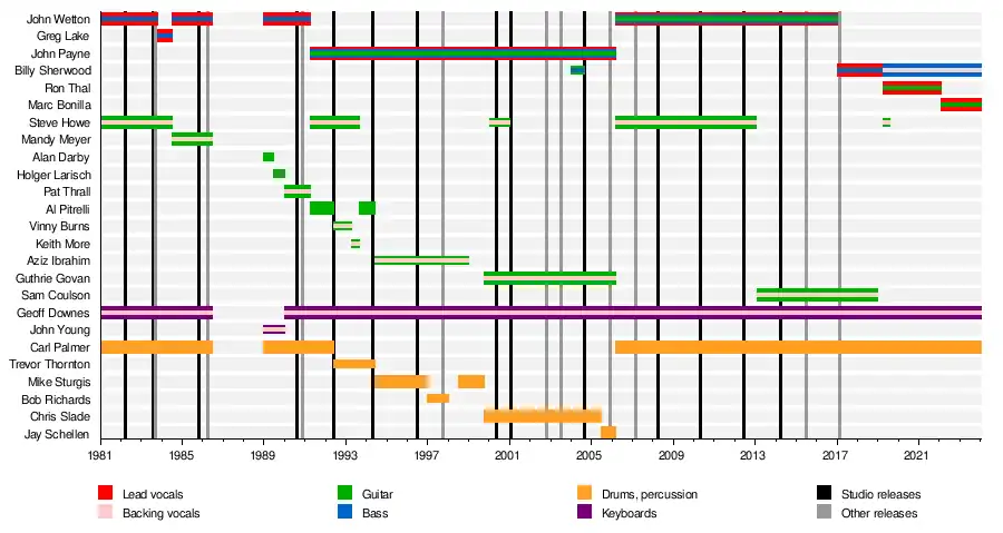 - ↑ "Asia Reveal Steve Howe's Replacement | News | Prog Magazine". Progrockmag.com. Archived from the original on 13 February 2013. Retrieved 21 February 2013.
