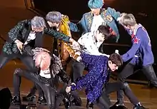 ![]() BTS performing during the Love Yourself World Tour in 2019, the band's biggest tour to date. | |