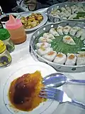 Chinese Indonesian | Fried wonton filled with chicken or shrimp with sweet and sour sauce. |