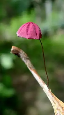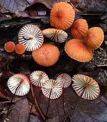 Note that several groups of species which were formerly considered to belong to Marasmius have been moved to the new genera Cryptomarasmius, Mycetinis and Rhizomarasmius.[2][1]