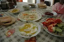 • Arabic salad—made of tomato, cucumber, onion, olive oil and lemon juice, Palestinian variant called Salatat al-bundura ("tomato salad")
