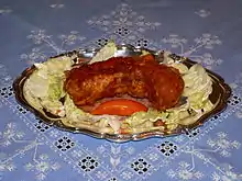 • Apanado de alpaca: Breaded alpaca meat, served with rice, potatoes, and salad.[10][11]