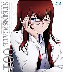 Steins;Gate Blu-ray volume 1 cover, featuring Kurisu Makise.