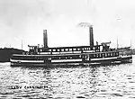 | Lily | 1882 | Wooden screw steamer. Built J. Piper, Balmain, NSW. 20 hp triple expansion steam engine. Spent much of her time on the Circular Quay to Neutral Bay run.[37] In 1894, collided with Manly ferry, Conqueror, smashing in 10 feet of her bow and partially sinking her. Conqueror suffered minor damage.[38] Broken up 1911 | 66 tons | 23.0 m | 250 | - | 1911 | |