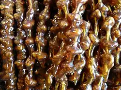 Candy | Walnuts lined on a strand coated in thickened grape or mulberry juice and dried to resemble sausages |