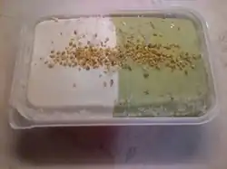 Non-dairy ice | A shaved ice dessert, sweetened with powdered sugar and a red fruit or flower syrup. Additional toppings are added, usually fruits. Originating in the city of Adana. Although the taste is different, due to the use of different toppings and syrup, it is very similar to Korea’s Bingsu |