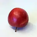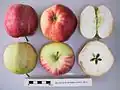 Astillisch[5] Germany Raised 1929 Parentage Red Astrachan x Signe Tillisch. Width 63–70 mm, height 56 mm. Flesh yellowish-white, juicy, soft, subacid. Eating Pick August. Use August.