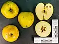 Akin[25][26] Illinois, US 1831 Tree vigorous. Width 68 mm (2.7 in), height 52 mm (2.0 in). Stalk 20 mm (0.79 in). Flesh is yellow, crisp, tender, juicy, subacid, aromatic, good to very good. Eating Use January–June