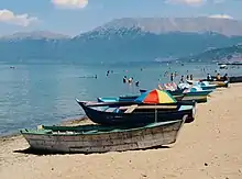 Pogradec Beach lies on the shores of Lake Ohrid, in the eastern municipality of Pogradec. It was formed due to the lake's surface reduction caused by tectonic subsidence, leading to the discovery of sandy deposits brought by the stream flowing through Pogradec and other streams entering the lake.