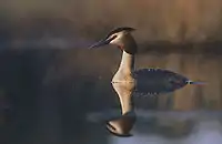 Grebes are small to medium-large freshwater diving birds. They have lobed toes and are excellent swimmers and divers. However, they have their feet placed far back on the body, making them quite ungainly on land.
