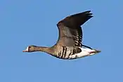 | Greater white-fronted goose | Anser albifrons | A | Least concern | ? | Vagrant | ![]() |