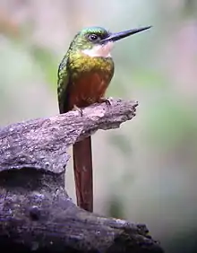 This is a list of the bird species recorded in Panama. The avifauna of Panama included a total of 1020 species as of July 2023, according to Bird Checklists of the World (Avibase).[1] Three species have been added from other sources. Of the 1021 species, 125 are rare or accidental and six have been introduced by humans. Seven are endemic. An additional accidental species has been added from another source.