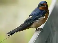 The family Hirundinidae is adapted to aerial feeding. They have a slender streamlined body, long pointed wings, and a short bill with a wide gape. The feet are adapted to perching rather than walking, and the front toes are partially joined at the base.