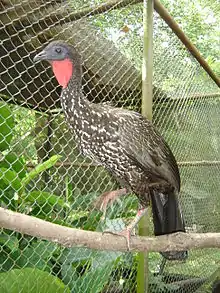 Crested guan, which has decreased in numbers due to hunting and deforestation.