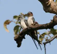 The family Hirundinidae is adapted to aerial feeding. They have a slender streamlined body, long pointed wings and a short bill with a wide gape. The feet are adapted to perching rather than walking, and the front toes are partially joined at the base.