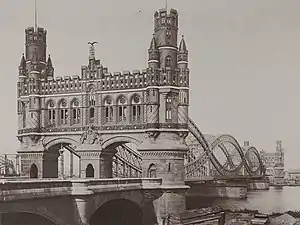 ![]() | Eisenbahnbrücke 53°31′58″N 10°1′23″E / 53.53278°N 10.02306°E | 1872 | Veddel, Rothenburgsort, Hammerbrook | designed by Heinrich Strack; carries the Hanover–Hamburg and Wanne-Eickel–Hamburg railway lines | ||