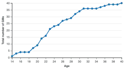 The following chart illustrates the total number of female grandmasters by year based on the date when each player achieved the GM title (the title date).