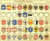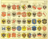 In many of these coats of arms, an eagle reflects the direct association with the Holy Roman Emperor, whose own standard was that of an imperial eagle.